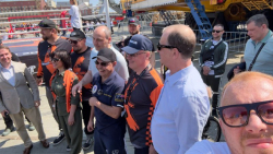 Знаменитый боксер заехал на площадку на байке. Поприветствовал гостей вместе с Сергеем Кочневым (президентом академии бокса Кости Цзю), после провел чемпионскую разминку.