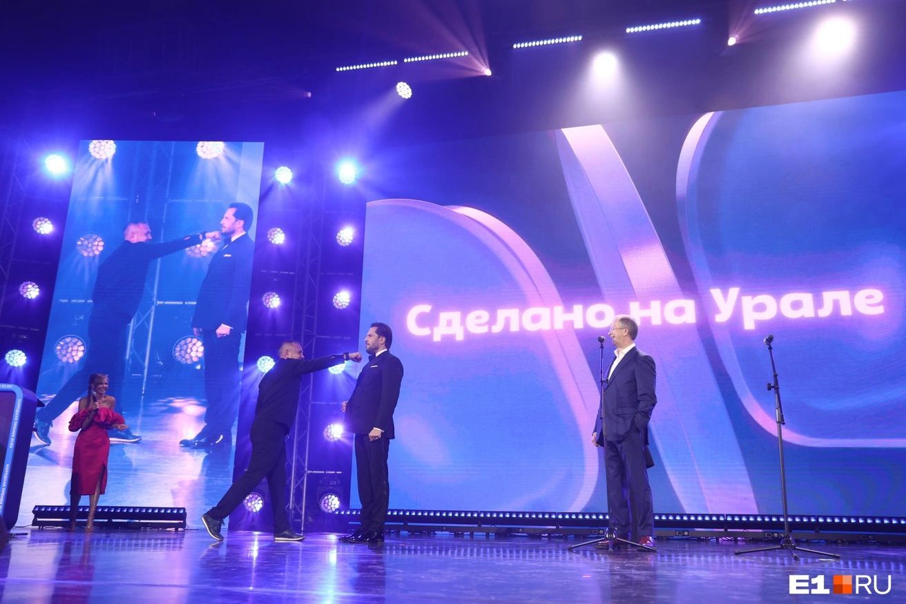 Вечером на сцене вместе с ведущими Аллой Михеевой и Александром Реввой появился абсолютный чемпион мира по боксу наш земляк Костя Цзю. Именно он объявил победителя престижной номинации «Сделано на Урале». Статуэтку получил коллектив кондитерского предприятия «Бисквитный двор».